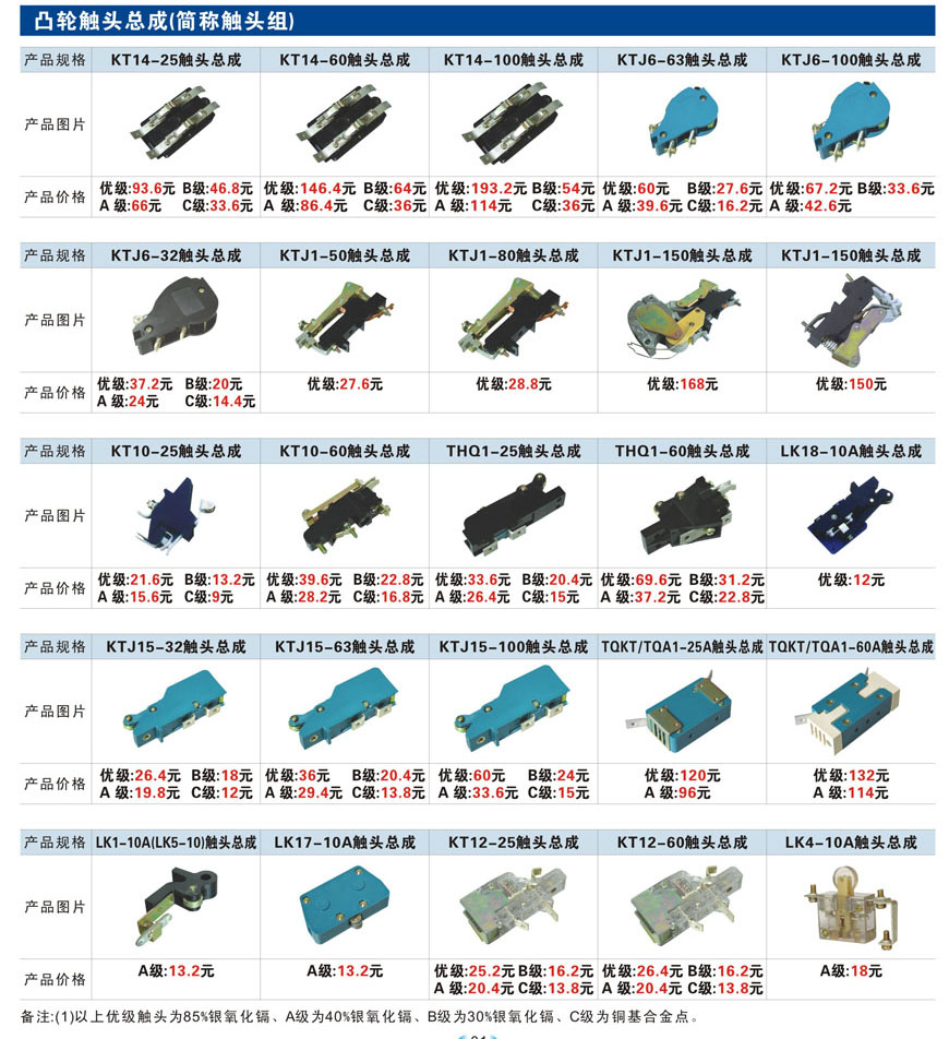 KT10、KT14、KTJ6、KTJ15、KTJ1凸轮控制器系列触头