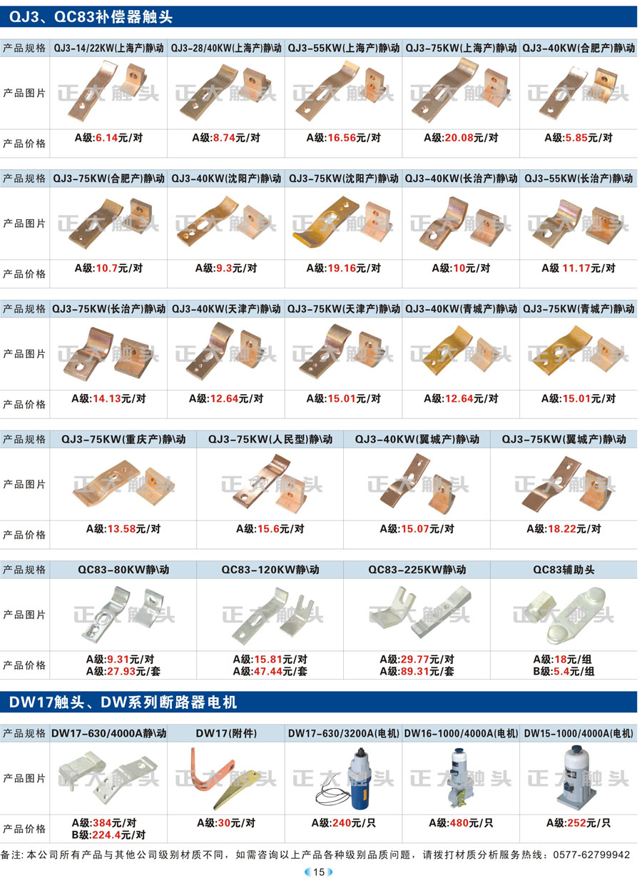 QJ3、QC83补偿器触头、DW17触头、DW系列断路器电机