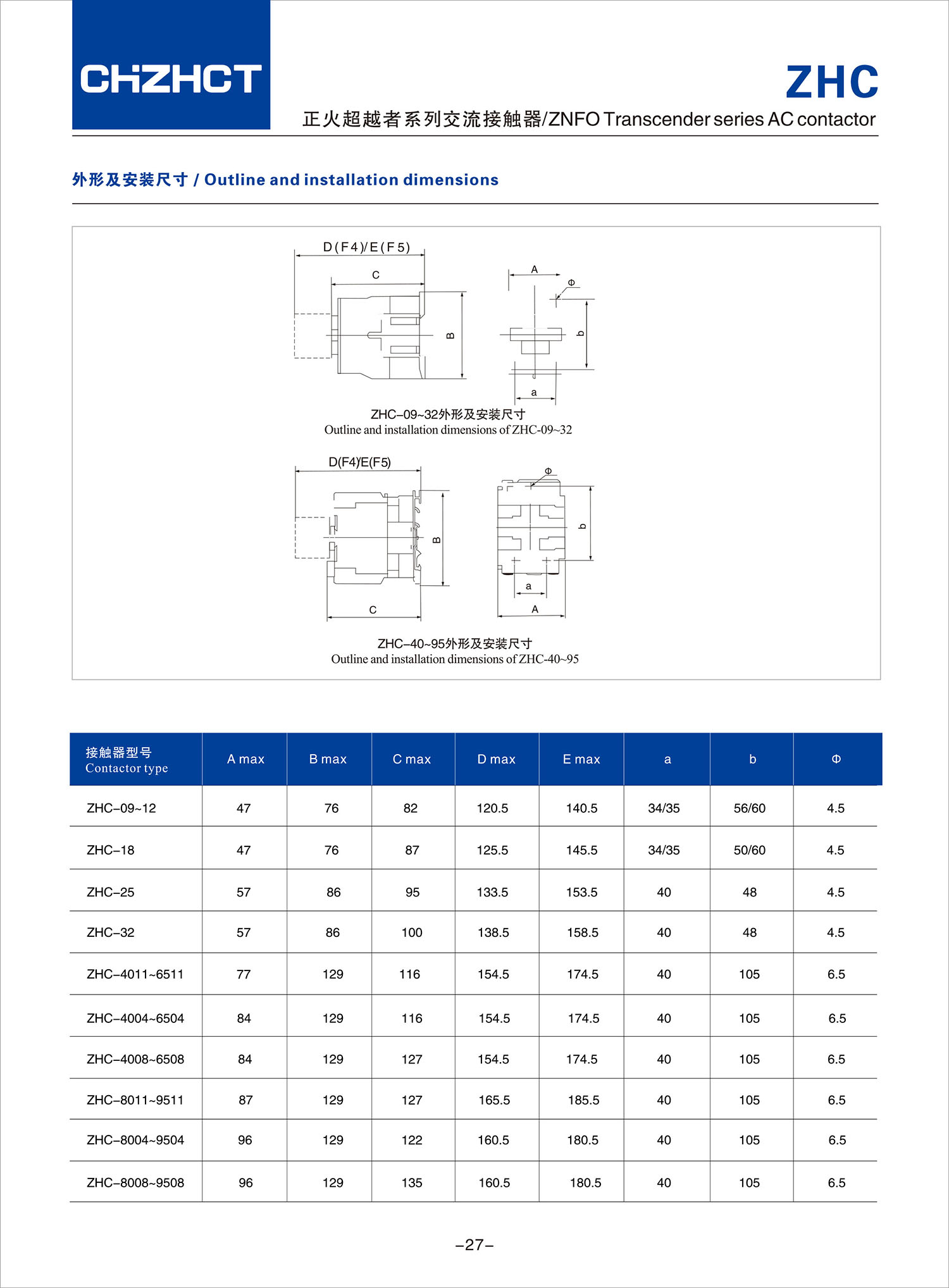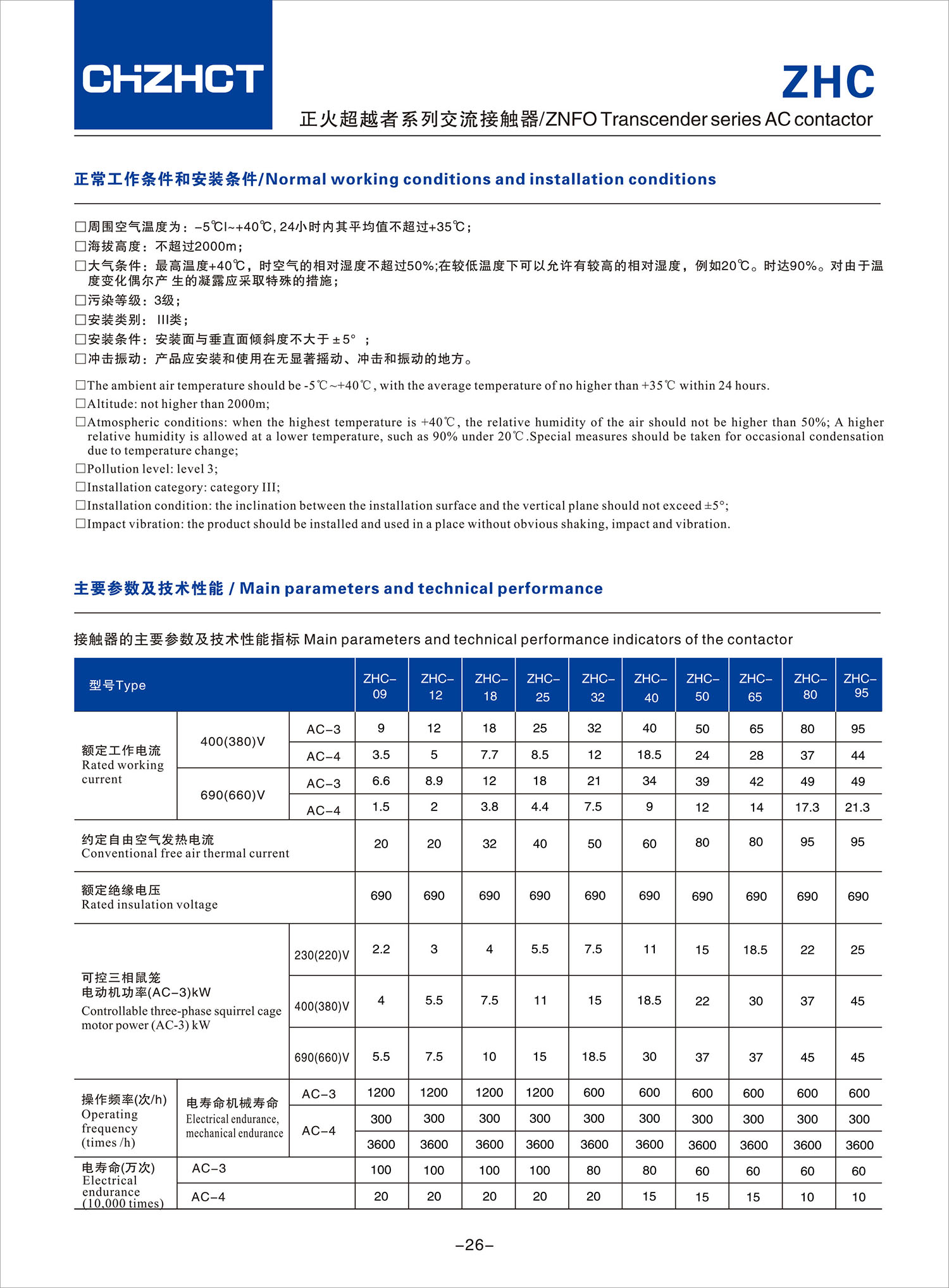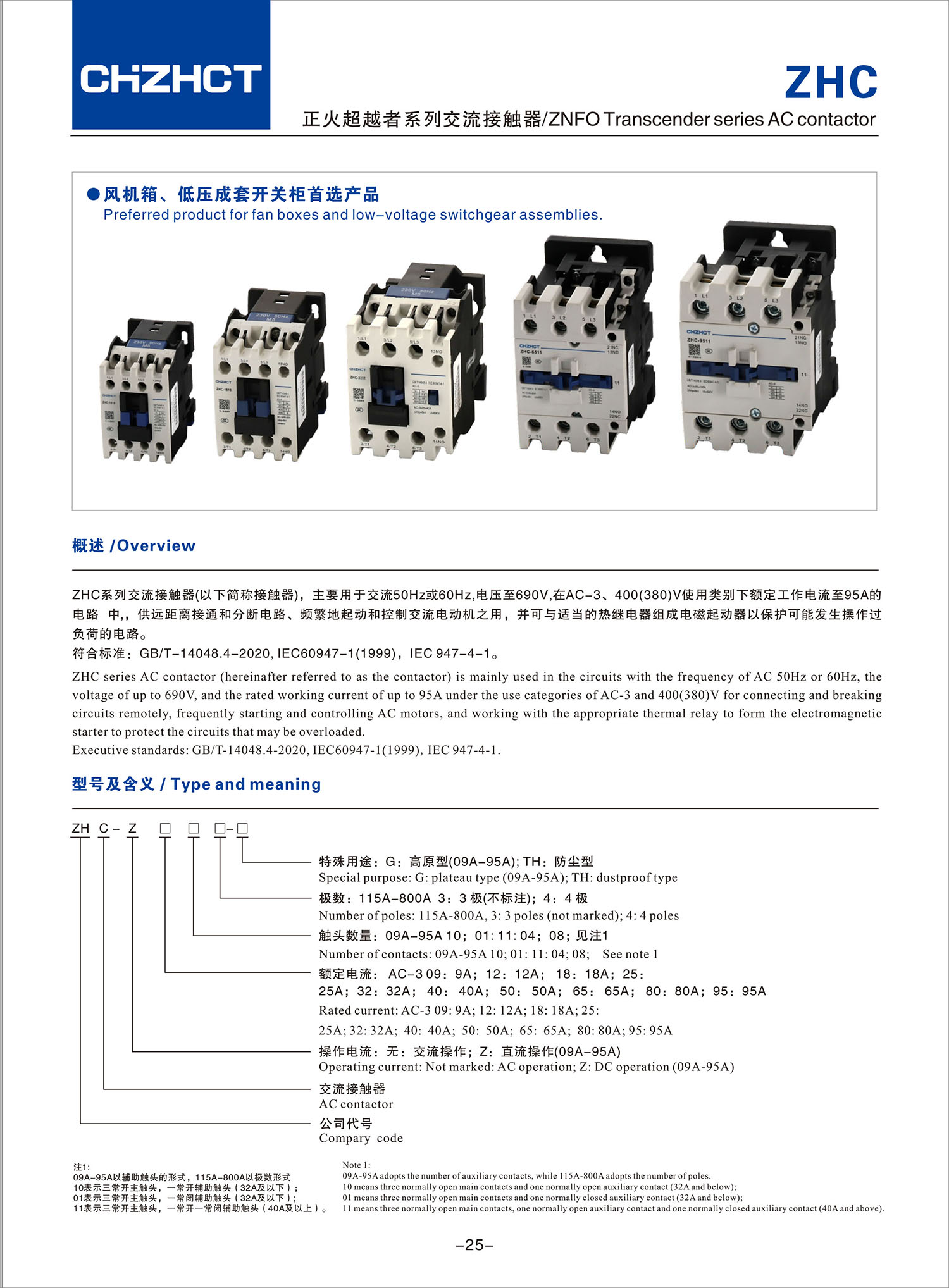 ZHC suncitygroup太阳集团超越者系列交流接触器产品说明书