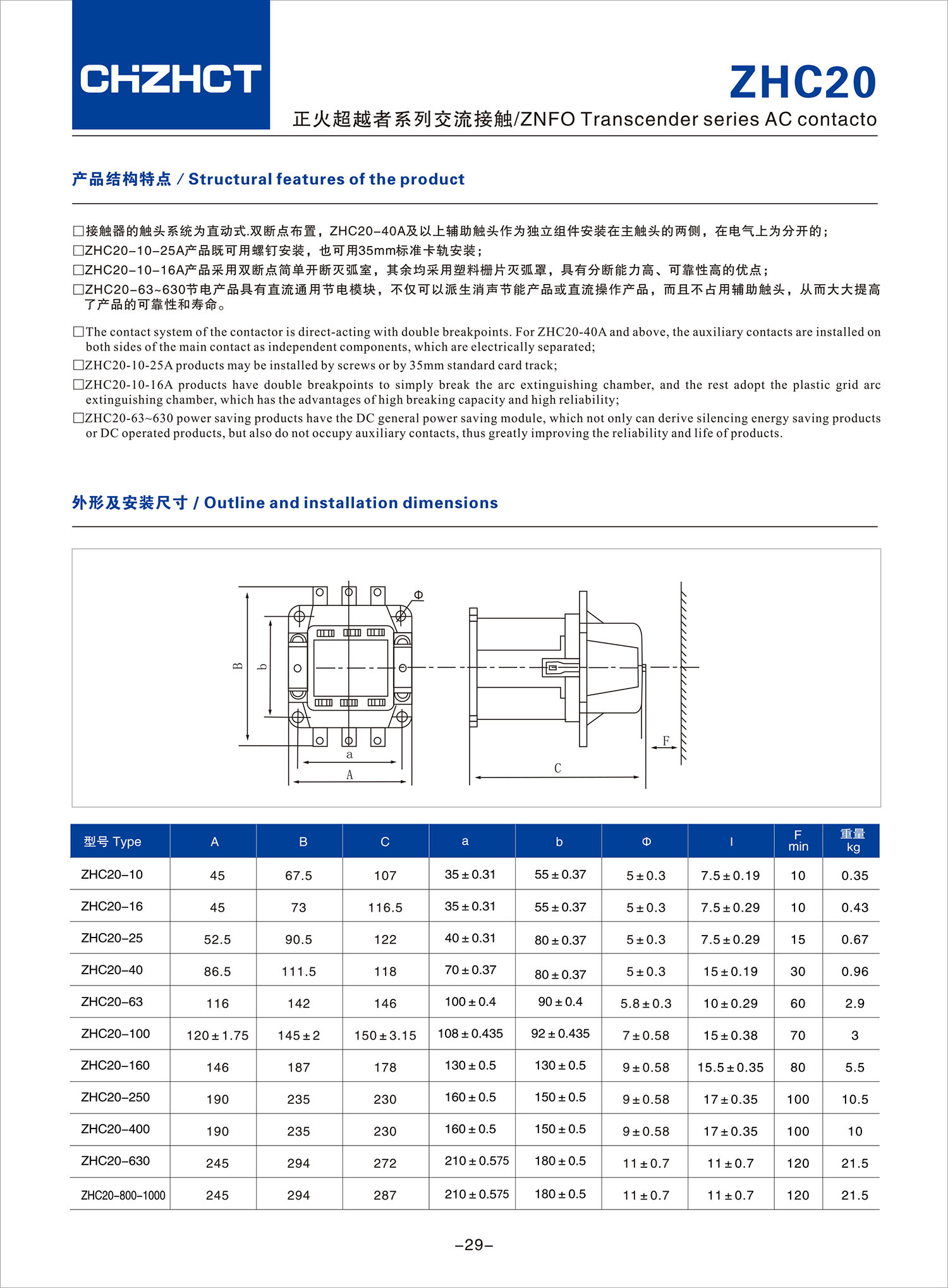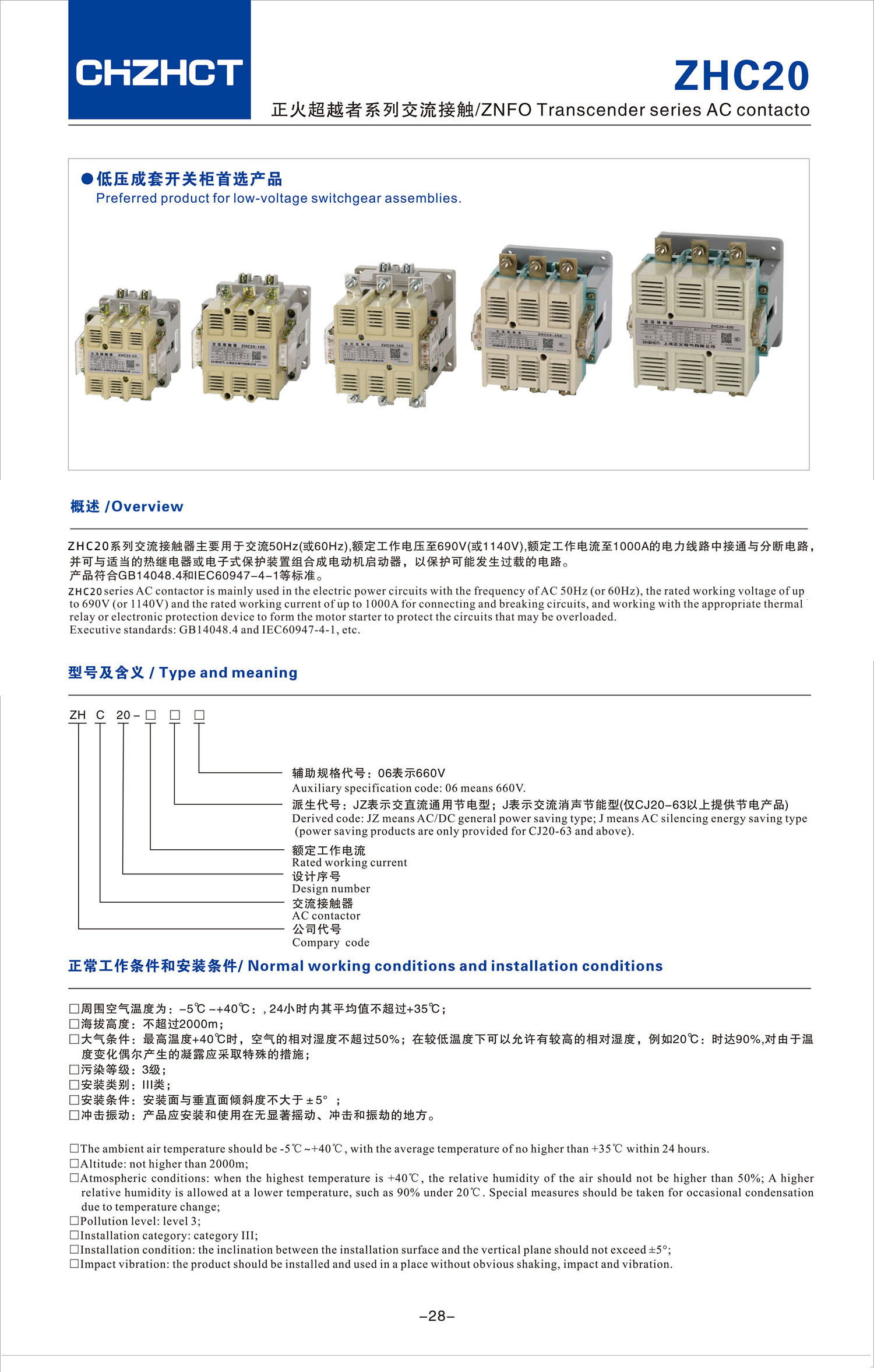 ZHC20 suncitygroup太阳集团超越者系列交流接触器产品说明书