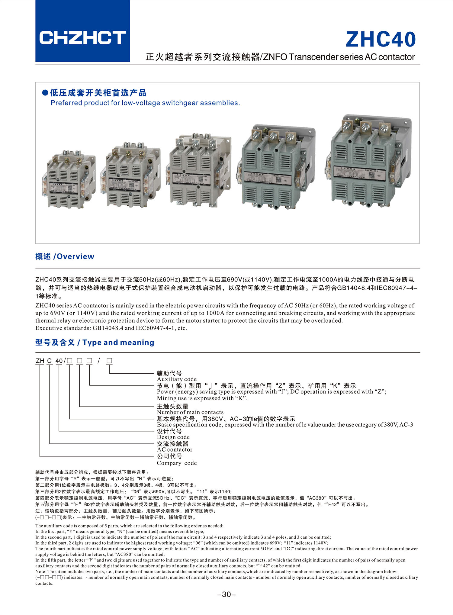 ZHC40 suncitygroup太阳集团超越者系列交流接触器产品说明书