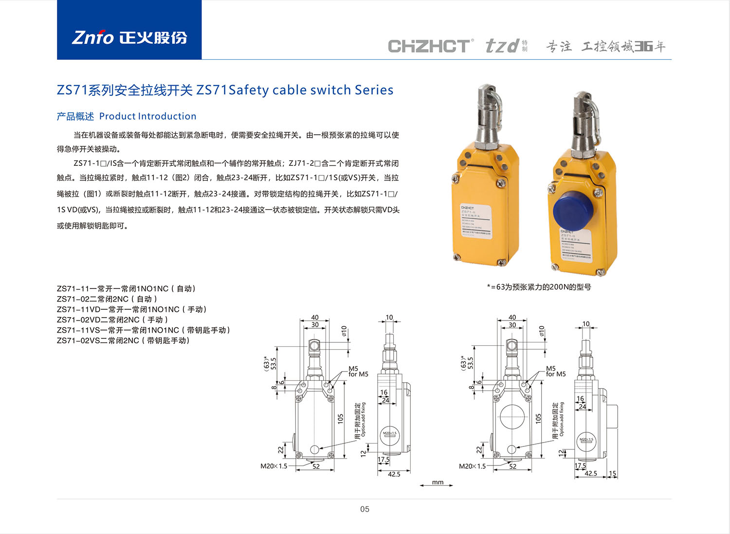 ZS71安全拉线开关_拉绳开关_行程/微动/跑偏/拉绳/超速_工业控制与保护_产品中心_suncitygroup太阳集团电气股份有限公司