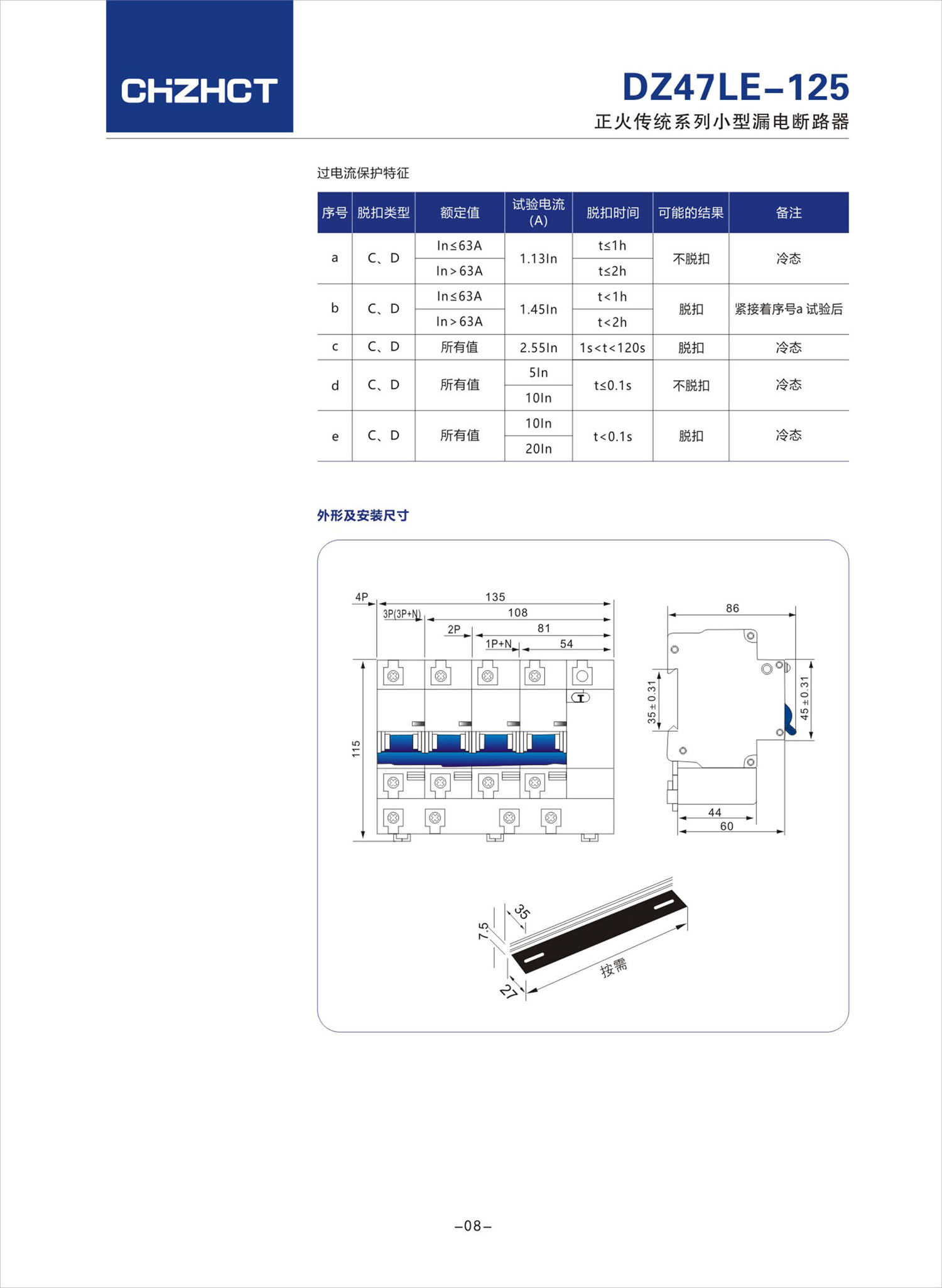 DZ47LE-125小型漏电断路器产品说明书