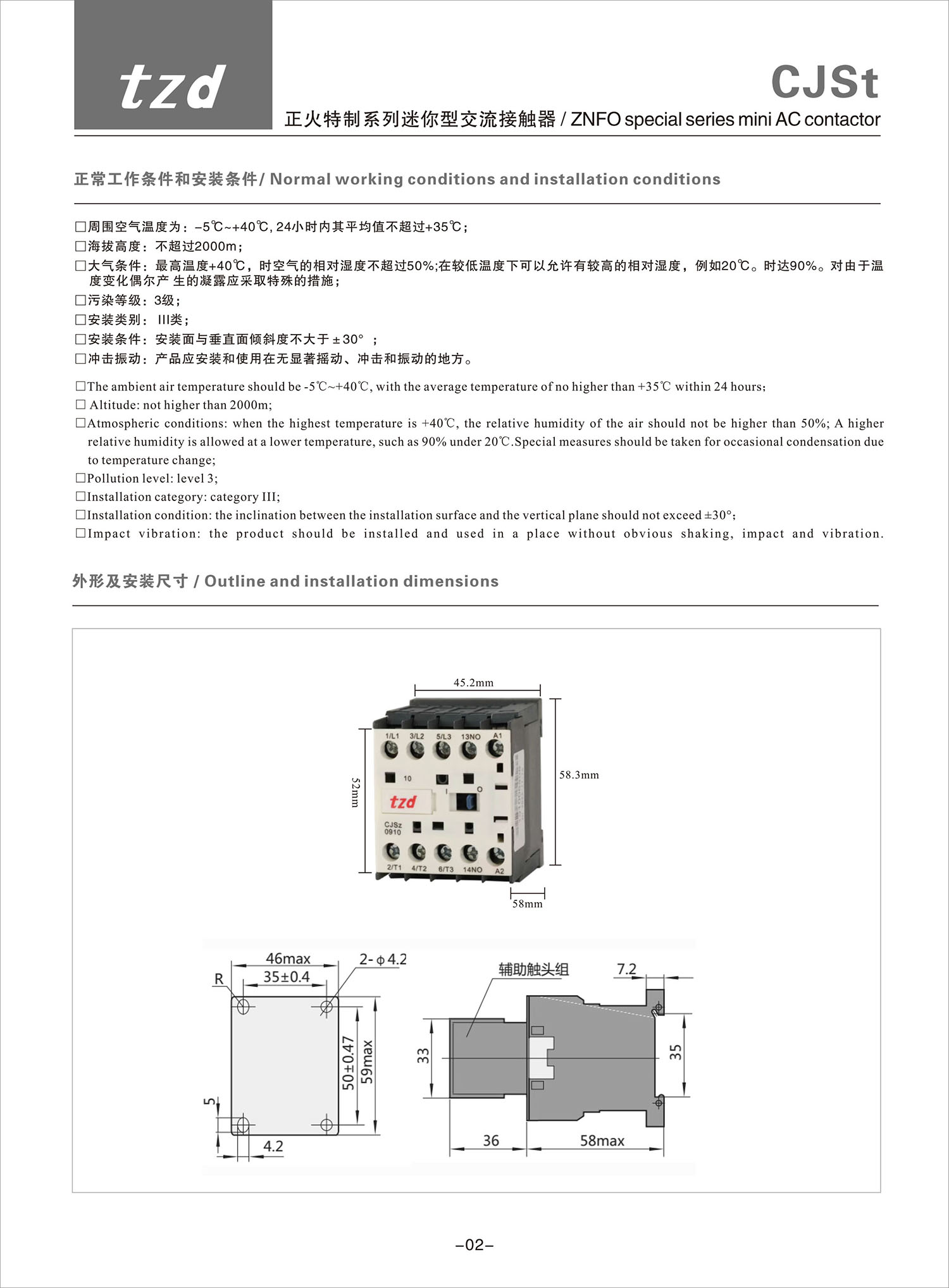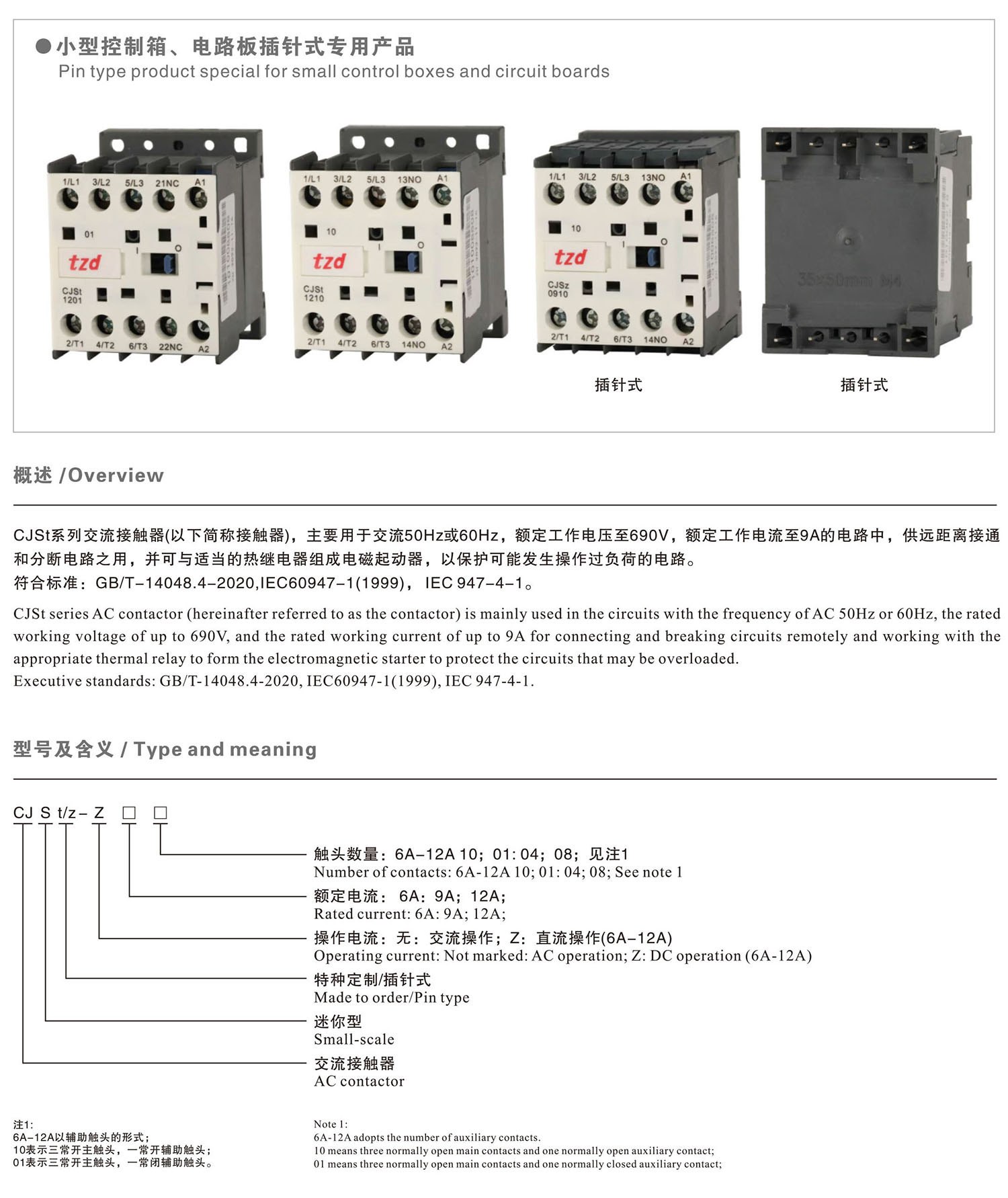 CJSt suncitygroup太阳集团特制系列迷你型交流接触器产品说明书