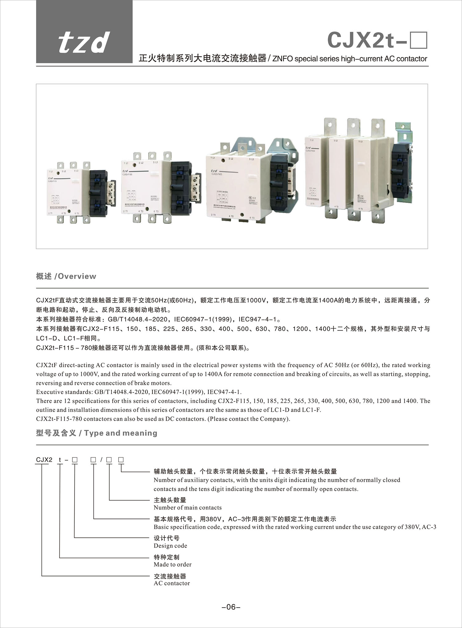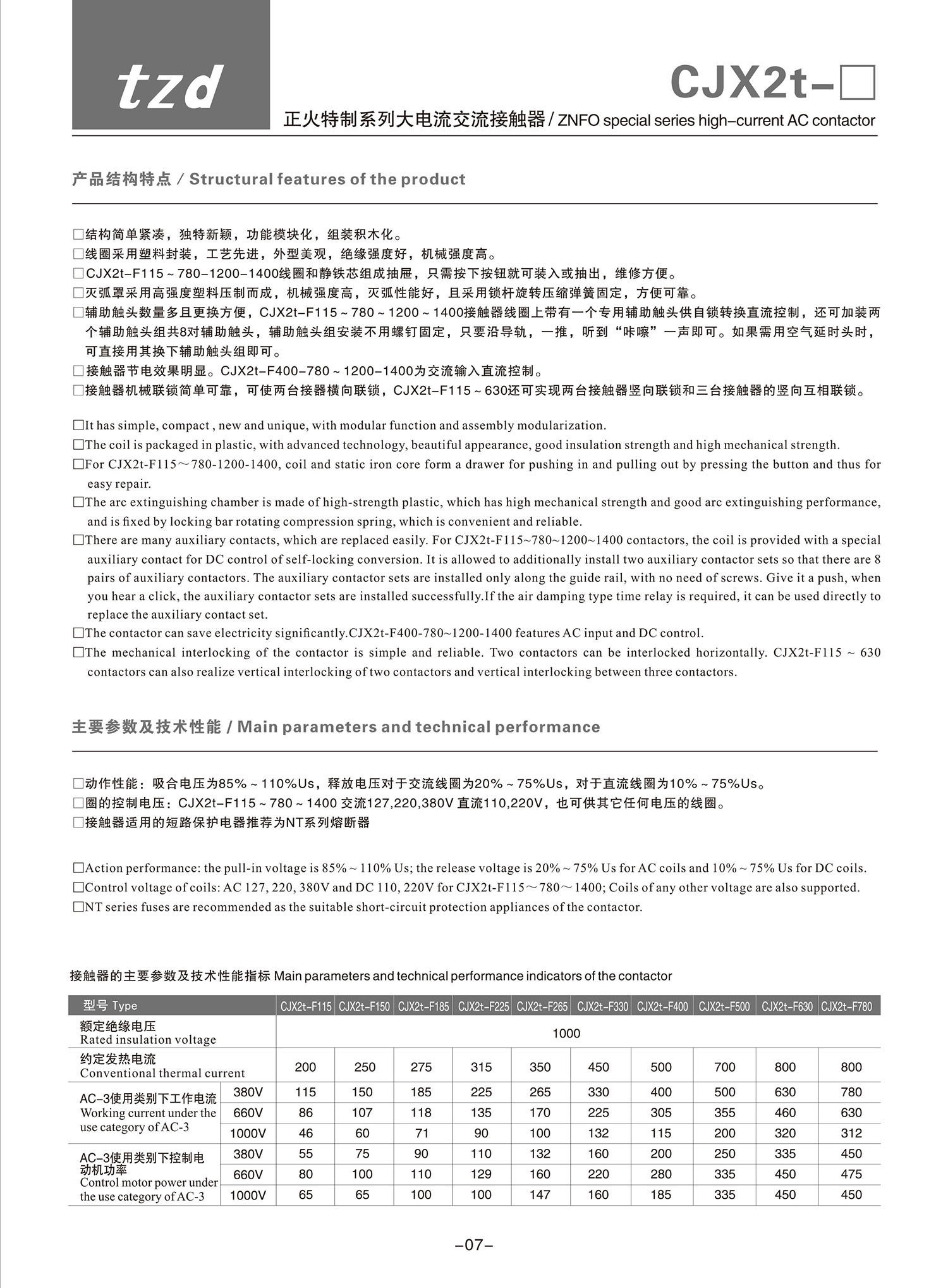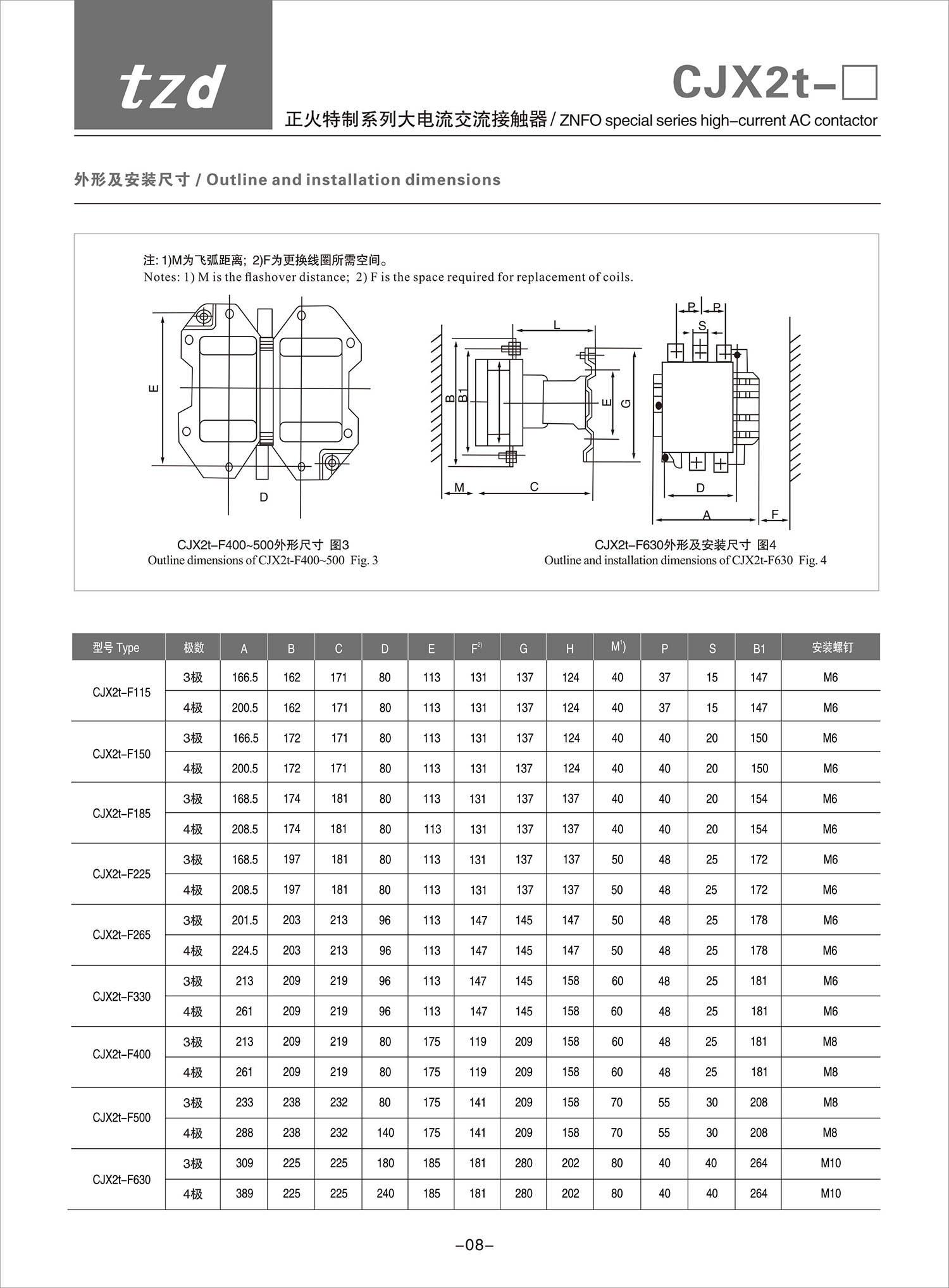 CJX2t-F suncitygroup太阳集团特制系列大电流交流接触器产品说明书