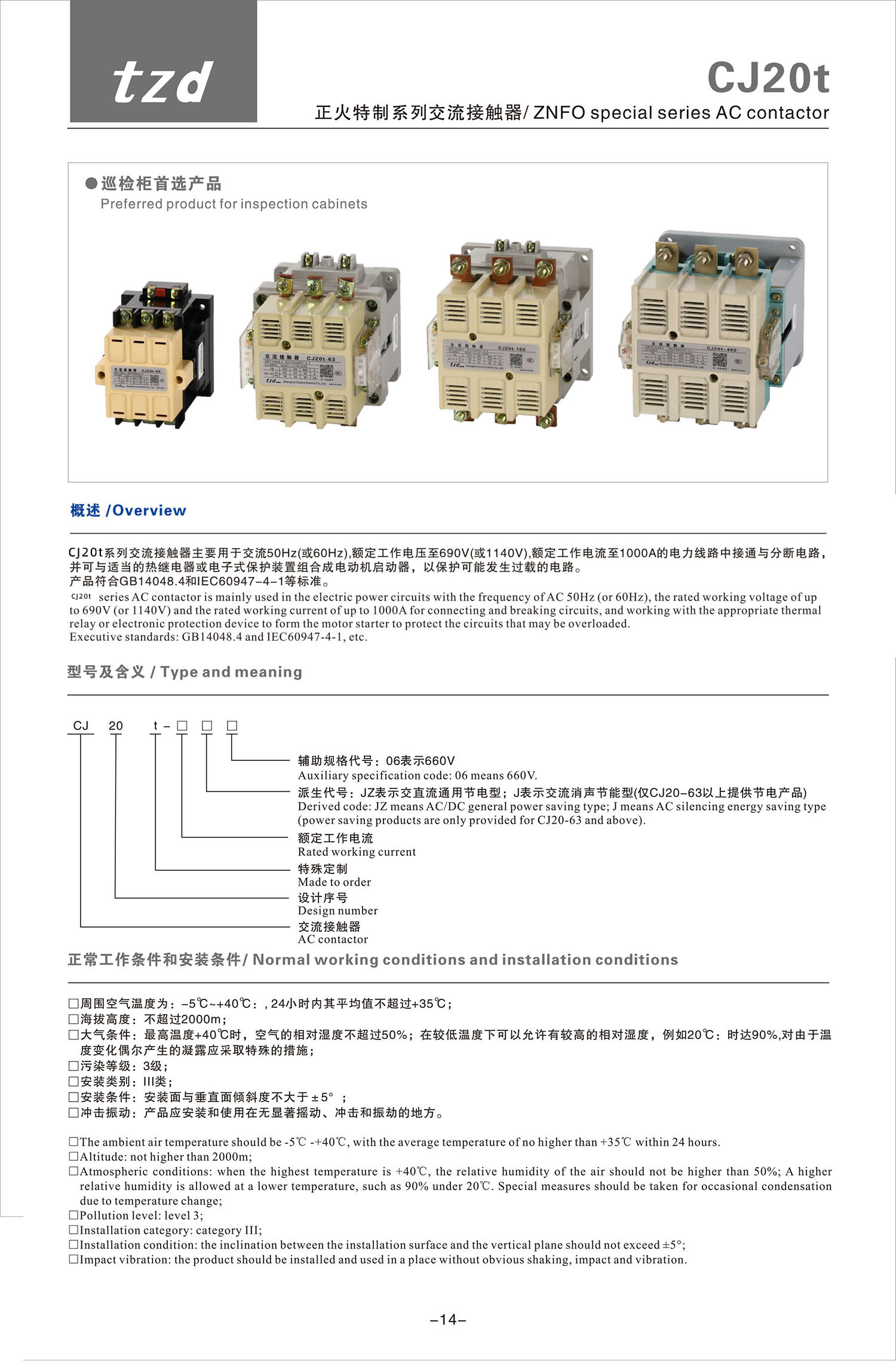 CJ20t suncitygroup太阳集团特制系列交流接触器产品说明书