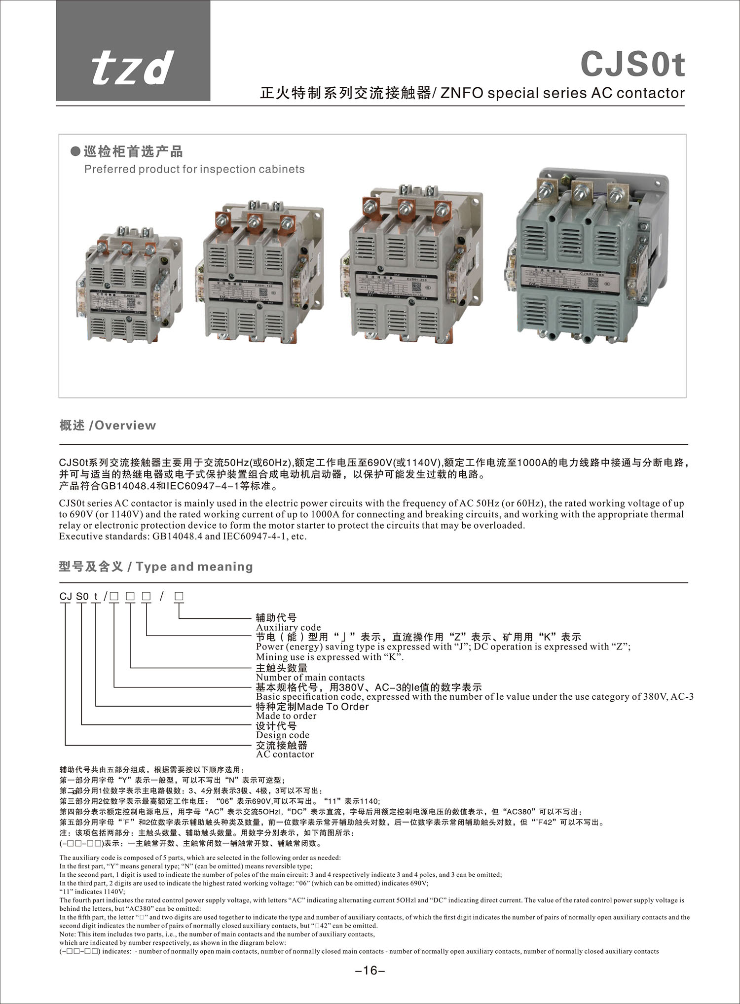 CJS0t suncitygroup太阳集团特制系列交流接触器产品说明书