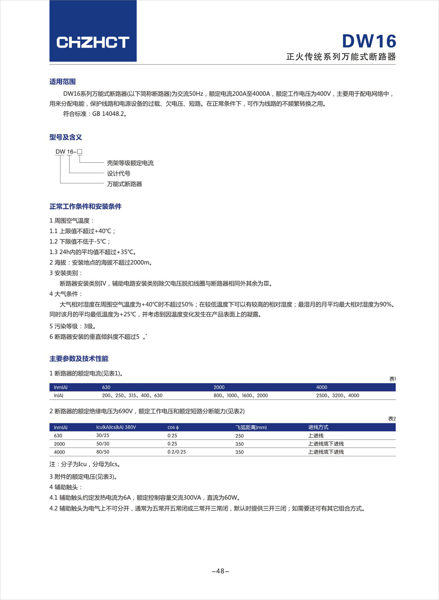 DW16 系列万能式断路器产品说明书