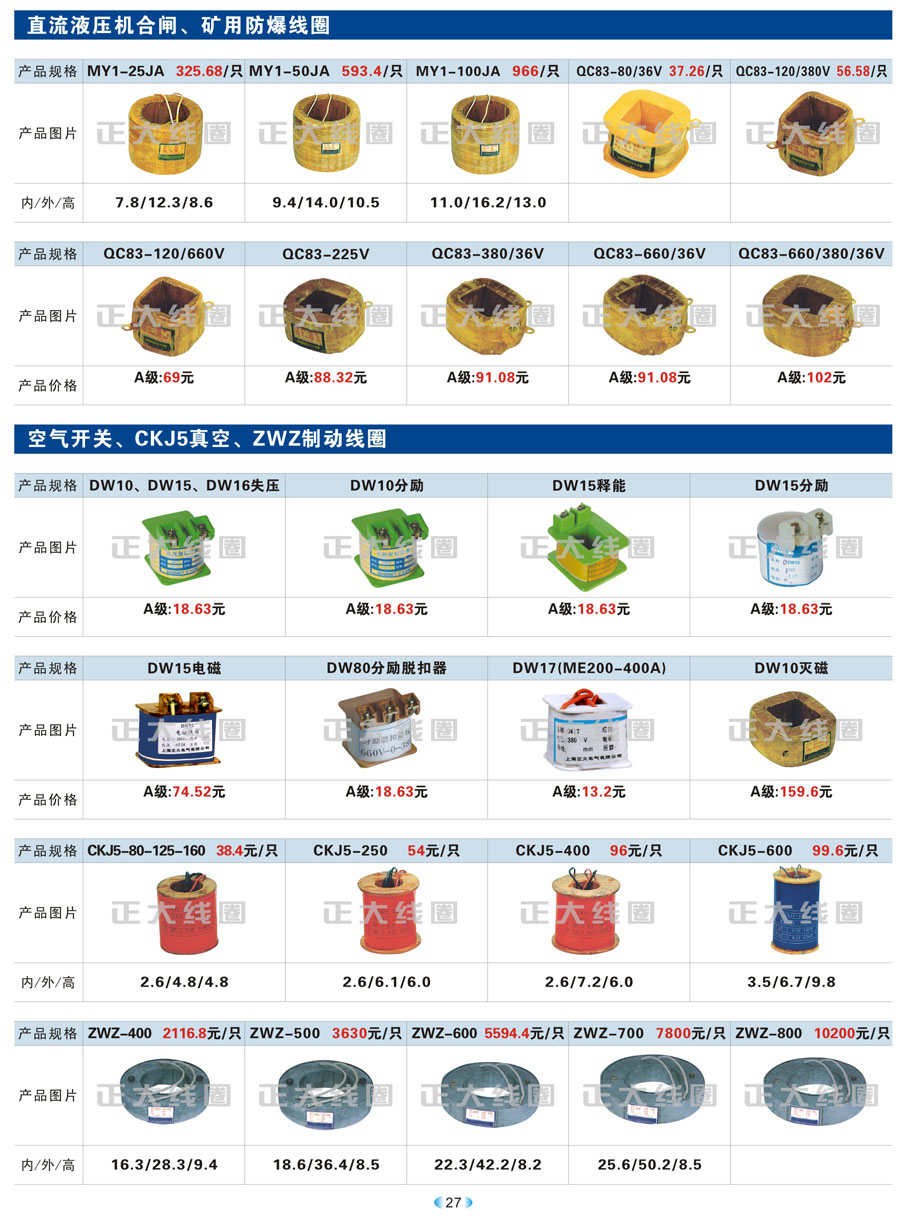 直流液压机合闸、矿用防爆线圈、空气开关、CKJ5真空、ZWZ制动线圈