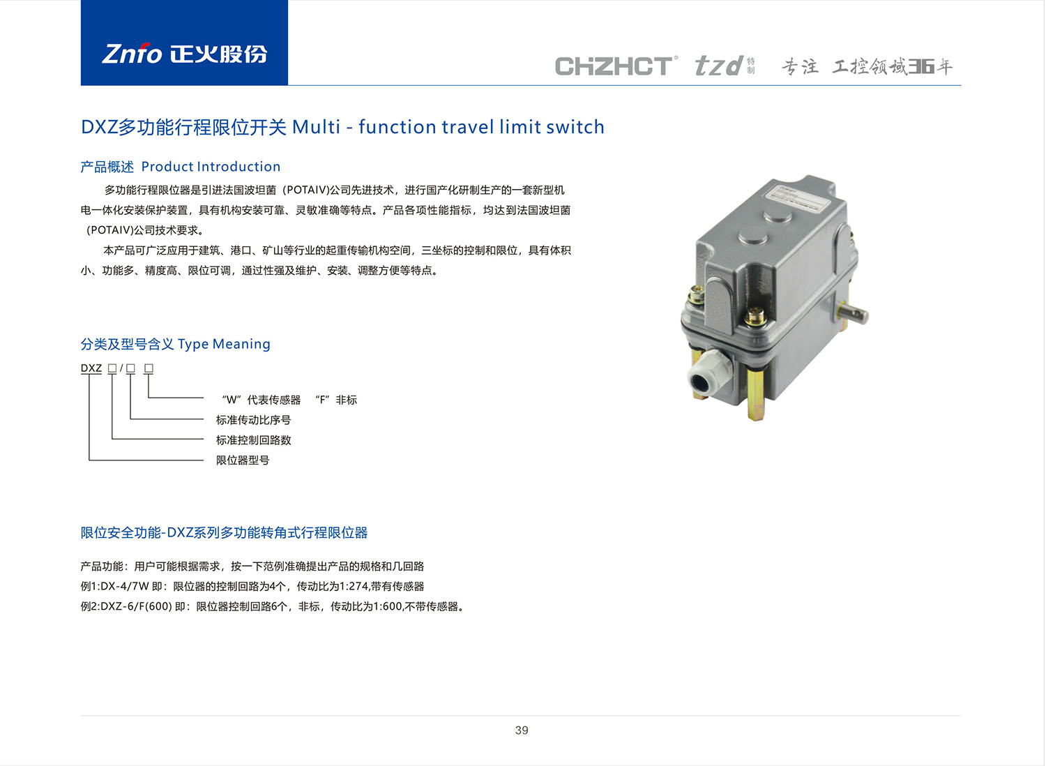 DXZ多功能行程限位开关产品说明书