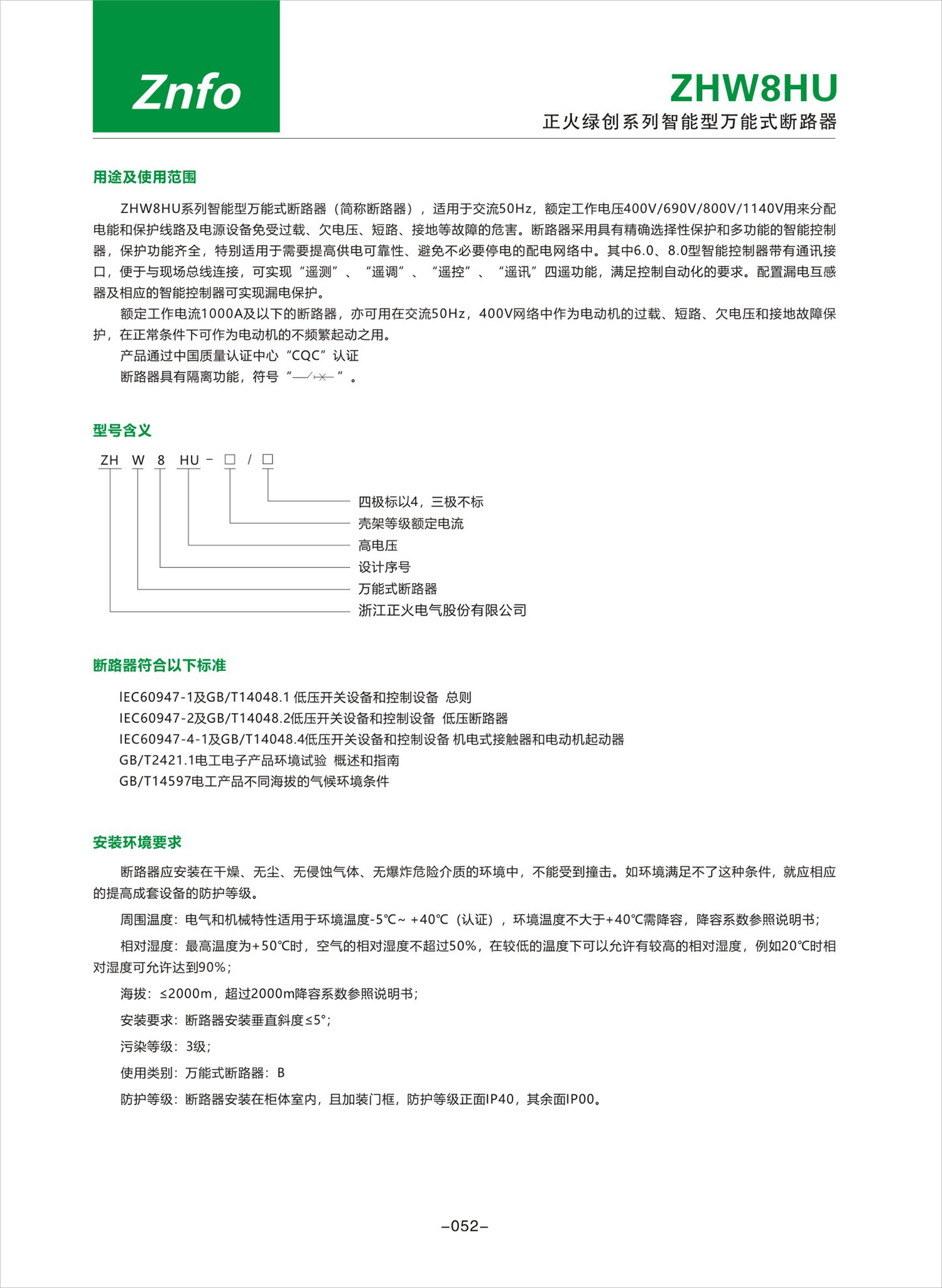 ZHW8HU系列智能型万能式断路器产品说明书