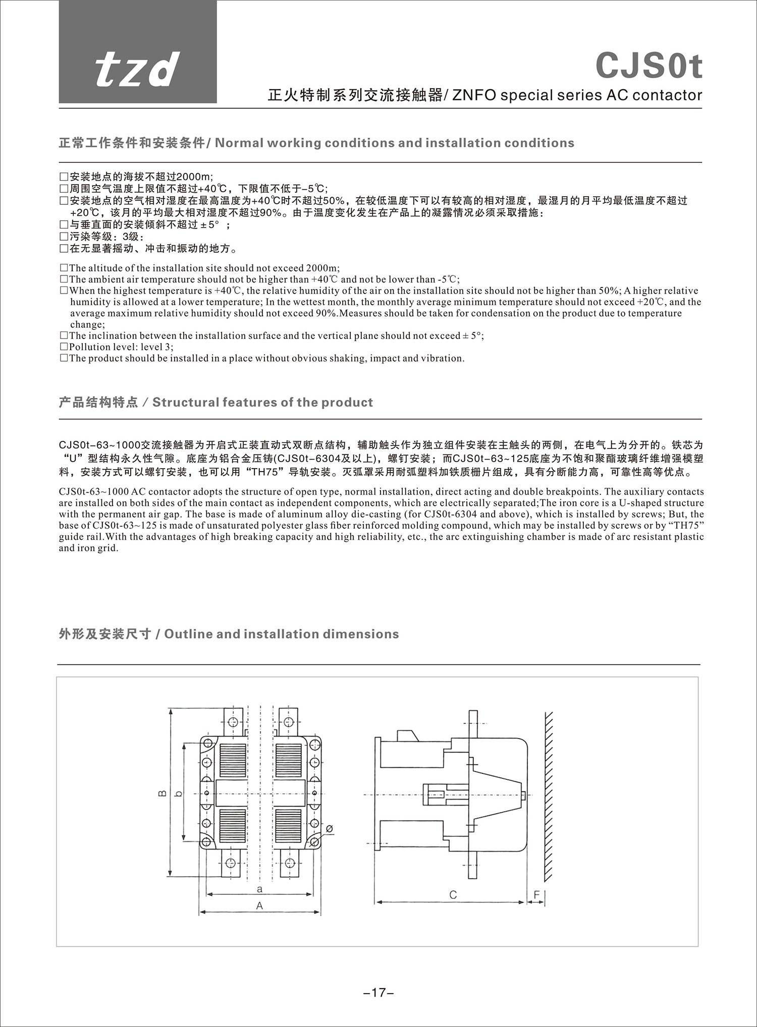 CJS0t suncitygroup太阳集团特制系列交流接触器产品说明书